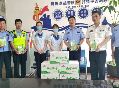 “天氣太熱了,一定記得多喝水!”建行奉賢支行港灣志愿者來到柘林鎮派出所,為他們送上了飲用水、毛巾、清涼油等防暑降溫用品。片區民警們為保一方平安,不畏酷暑在外忙碌了一個上午,港灣的小“溫情”讓他們在酷暑之中倍感清涼。