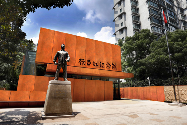根據場館設計方介紹,之所以選擇銹蝕后的耐候鋼板作為建筑立面材料,是因為鋼既代表著工人革命者的階級特征,也代表著工人百折不撓的斗爭意志。有別于農民運動與知識分子抗爭,工人斗爭的戰場就是工廠。鋼鐵作為工業建筑的常用建材,最能代表顧正紅烈士的工人身份。銹鋼原本只是棄之不用的廢材,通過設計的巧妙轉化,鍛造出“紅綢”的銹鋼又重新煥發出異樣的光彩,不僅藝術感十足,也諳和了生態環保和可持續發展的當代理念。尤其是鋼所具有的力量感,烘托著顧正紅紀念館的肅穆氣質,銹蝕后的表面所帶有的時間痕跡和滄桑質感,也寓意著可歌可泣的早期滬西工人運動。隨著時間推移而不斷變化的建筑立面,讓參觀者在感受到生命氣息的同時,對英雄的紀念也不再是靜止、孤立的片段,而是融入到每個人的日常生活和記憶之中。
