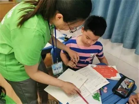 除了豐富多彩的課程,暑假作業也是暑托班必不可少的一環,在志愿者哥哥姐姐的輔導下,孩子們做作業中遇到的問題也迎刃而解。