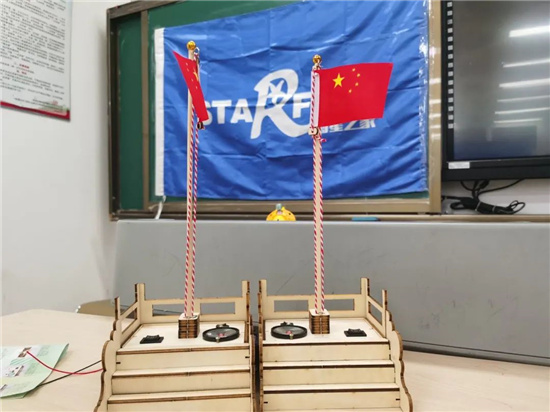 與此同時,同學們在老師的講解下,一邊了解“紅船精神”,一邊以手工制作拉開社區創新實踐活動的序幕。一艘紅船制作完畢,同學們又加入了“升降國旗”制作活動中!靶⌒〖t旗手們”先借助圖紙在制作的小木板零件上標上序號,隨后用工具包里的小工具,連接電路,完成“升降國旗”的制作。