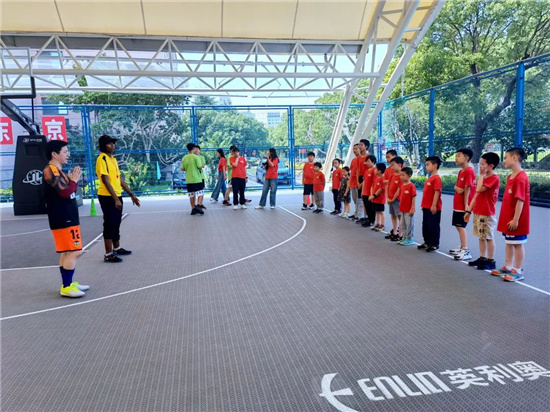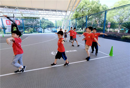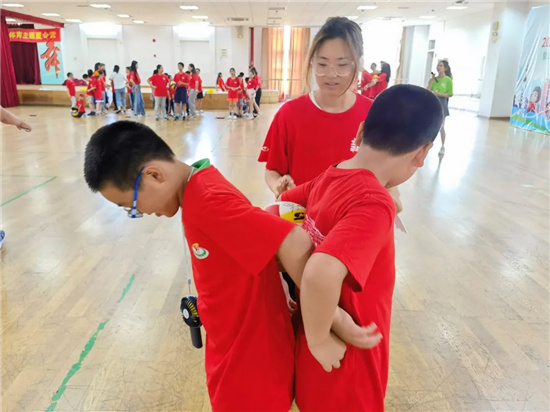 上午8時許,來自全區的40名中小學生齊聚上海體育學院。入營第一件事就是由上海體育學院的大學生們帶領小營員,通過背對背運球、折返運送乒乓球等破冰小游戲,拉近彼此距離,活躍現場氣氛。