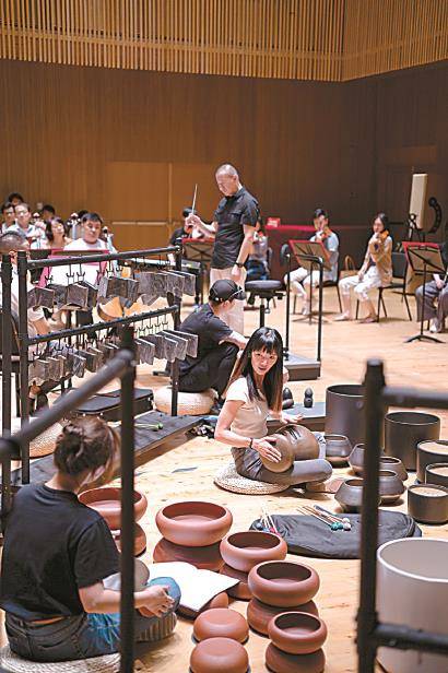 記者走進《大地之聲》排練廳,這里除了交響樂團的常規樂器,還有101件陶石樂器。那些看起來像花盆、魚缸、石凳的物件,竟然都被譚盾變成樂器,傳遞大地的聲音和力量。排練間隙,譚盾接受了本報記者專訪,講述創作背后的故事。