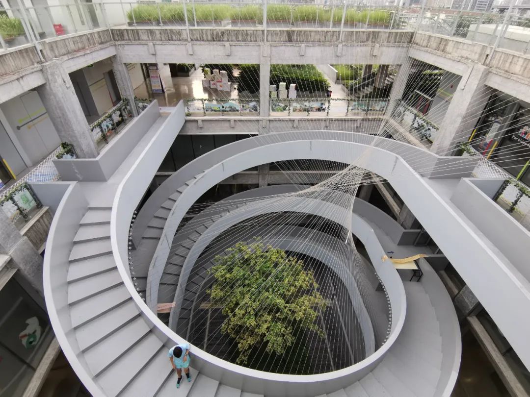 綠之丘原為煙草公司機修倉庫,前身是建于1920年的怡和冷庫。機修倉庫墻體拆除后,框架結構在原位得以保留,形成層層疊疊的露臺。露臺上種滿了綠樹花草,整個建筑遠遠望去好似一個空中花園。
