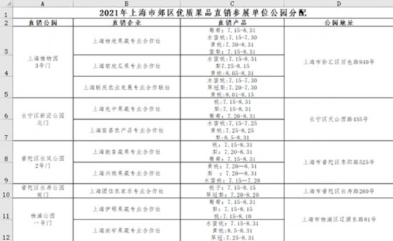 “果園公園手拉手,新鮮果品進萬家”,本次活動共吸引來自浦東、崇明、奉賢、金山、青浦等區30多家合作社參加,市民可以在滬上14家公園買到本地產優質水果。本次展銷時間為每天早上6時至10時,將從7月15日持續至8月31日;在售果品主要以葡萄、桃、梨等品種為主。