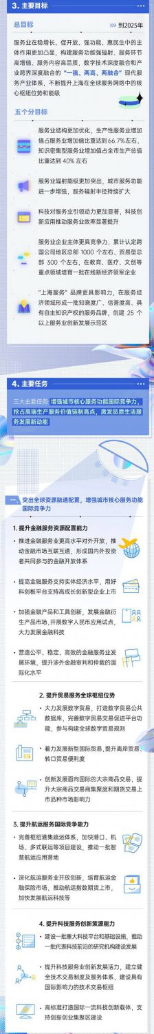 根據規劃目標,到2025年,上海要實現服務功能強輻射、服務環節高增值、服務內容高品質,數字技術深度融合和產業跨界深度融合,在全球服務網絡中的核心樞紐位勢和能級不斷攀升。