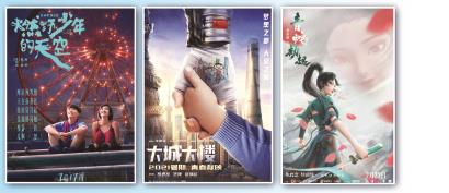 昨天起,《燃野少年的天空》《大城大樓》《白蛇2:青蛇劫起》三部“上海出品”陸續上映。 制圖:馮曉瑜