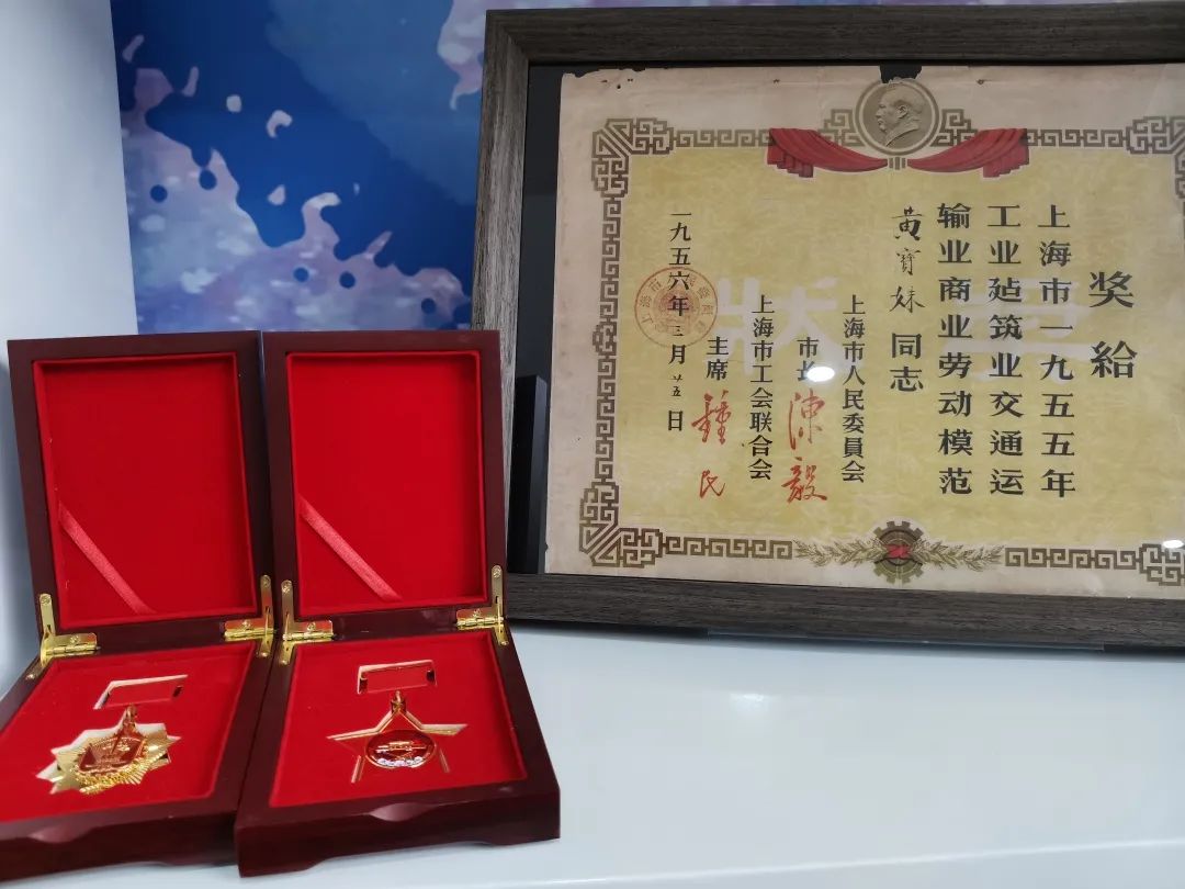 活動還開設了技能展,通過世賽榮光、技能基地、百年工業、勞模工匠、技工教育和世賽訓練6個主題,陳列展示了上世紀20年代以來,楊浦技能人才培養的發展歷程。其中有新中國紡織工人代表、“七一勛章”獲得者黃寶妹捐贈的數件重量級展品,包括一張1955年被評為上海市勞動模范的獎狀,一枚1953年首次獲得全國紡織工業部勞動模范的獎章。