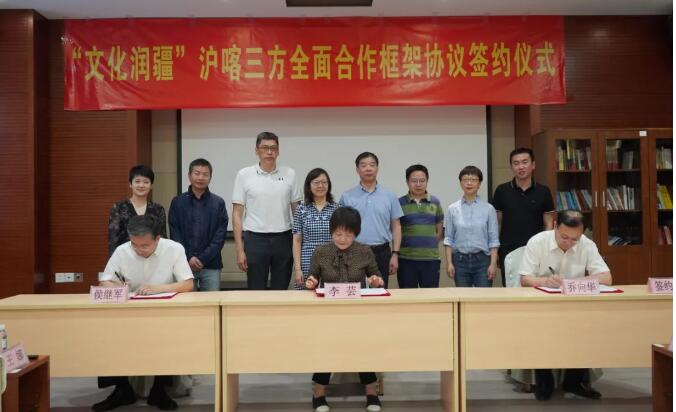 會后,解放日報社、喀什地委宣傳部、上海援疆前方指揮部共同簽約了《“文化潤疆”滬喀三方全面合作框架協議》。
