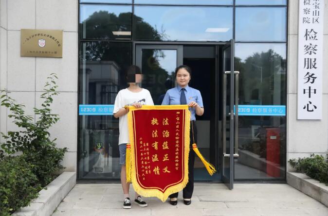 近日,一名高考生來到寶山區檢察院,向第三檢察部檢察官送上一面錦旗。