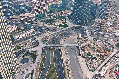 城市商圈上空架設連廊,在上海并不罕見。同濟大學建筑與城市規劃學院教授王偉強說,架設空中連廊設施可將商圈內各商業體在空中連接起來,將行人與車流分開,提高通行效率和安全性,但不少空中連廊只是“放”在城市已有公共交通干道上,對周邊商業體和辦公樓的接入程度不夠。