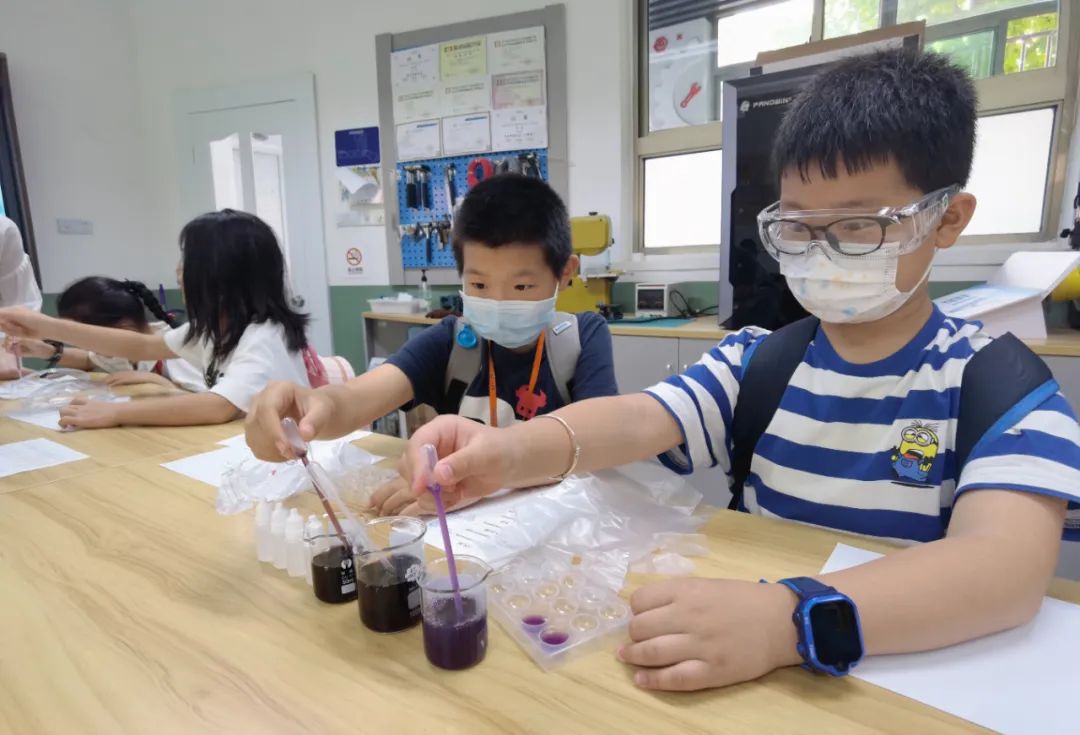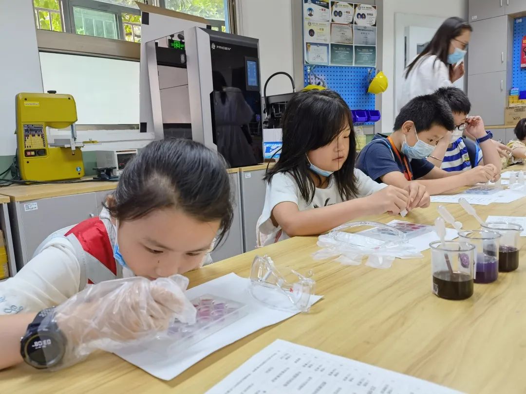 在“體驗科學家成就”版塊中,“傳統器械制作”、“科學實驗體驗”、“虛擬建造體驗”以及“金句書簽制作”四個項目,讓同學們“穿越古今”。大家嘗試制作古代的“衡器”、了解民間自古以來對植物的妙用并提取植物色素、在虛擬世界中體驗“橋梁工程師”、選擇我國古今科學名人名言創作原創書簽……