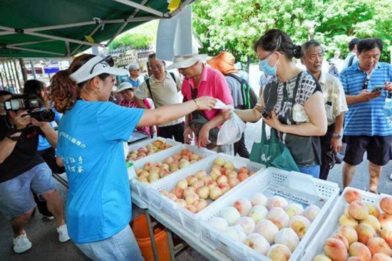 “好的農產品還要讓市民能便捷買到!睘榱朔奖闶忻襁x購地產水果,由上海市農業農村委等主辦的“果園公園手拉手,新鮮果品進萬家”2021年上海地產優質果品進公園推介活動正在全市14家公園內進行。上海農業展覽館“魚米之鄉”鄉村產品產銷服務平臺也正開展“盛夏果品節”主題活動,虹橋路上的“魚米之鄉”線下體驗店和線上小程序同步進行展銷。