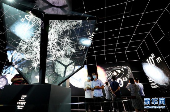 7月18日,參觀者走在“宇宙”展區內。