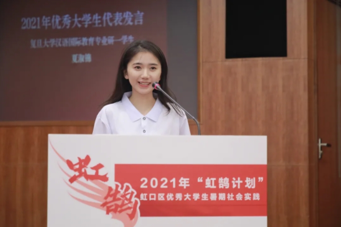團區委書記梁麗娜作2021年“虹鵠計劃”暑期社會實踐總體情況介紹,并預祝大家在虹口鴻鵠凌云一舉千里,度過充實而美好的暑期生活。區人社局副局長李敏向“虹鵠”學子介紹了虹口區“百人工程”儲備人才項目情況。