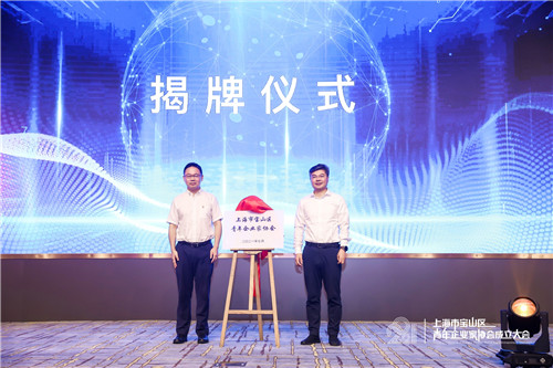 上海團市委副書記丁波與寶山區委副書記張義為上海市寶山區青年企業家協會揭牌
