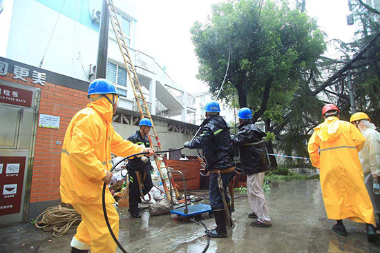 “煙花”來勢洶洶,又適逢天文大潮,“風、雨、潮”三碰頭。23日起,上海電網即進入“二級故障搶修狀態”,電網各級指揮體系啟動24小時保障值守。國網上海市電力公司提前組織輸電通道隱患特巡整治,對重要變電站恢復有人值守,并重點做好地下變電站、地勢低洼變配電站和電纜隧道的排水檢查和防汛工作。