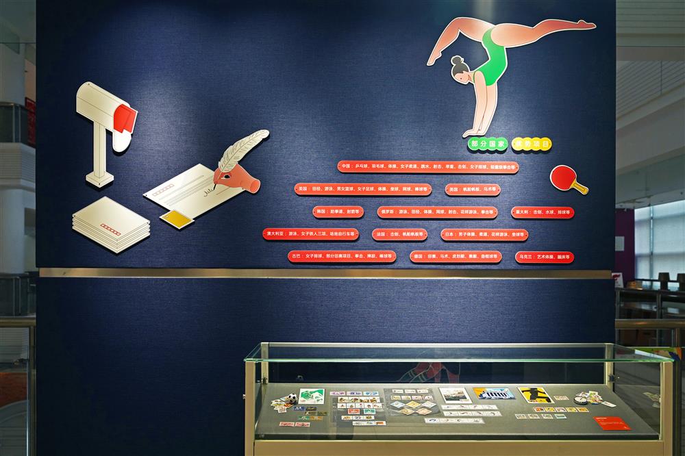 由于郵票尺寸較小,為了給觀眾呈現豐富的視覺效果,展覽還使用了大量的首日封、紀念封、小型張、極限片等。展墻上還做了夏季奧運會、冬季奧運會的時間表,以及奧運相關背景知識,方便觀眾參觀時了解。