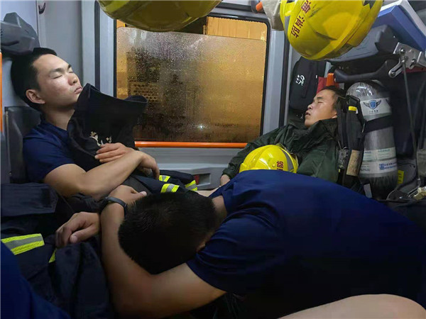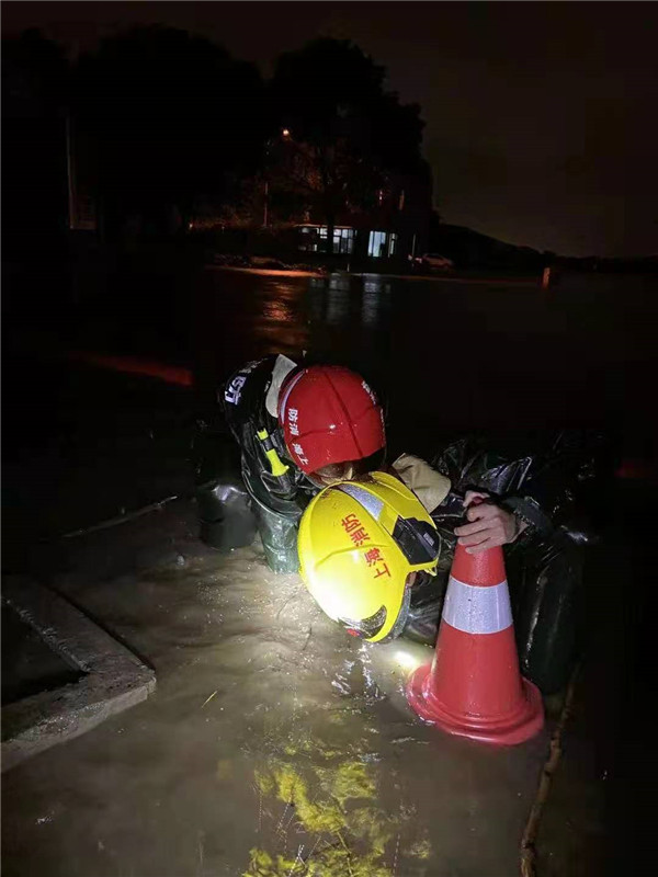 臺風“煙花”伴持續降雨致廠區被淹倉庫積水,消防員連續作戰緊急排水