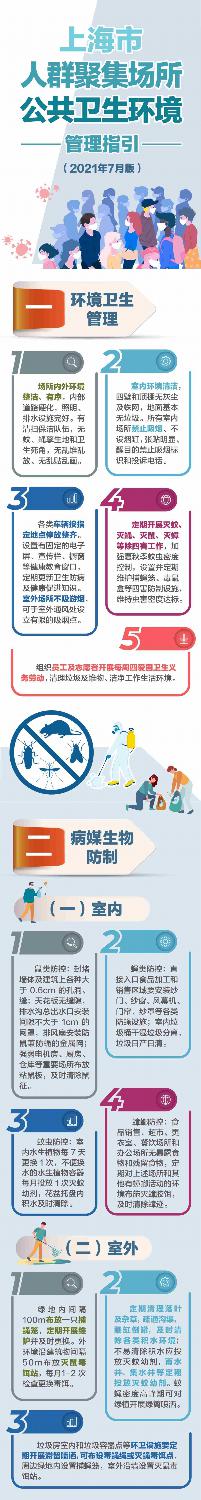 東方網記者劉軼琳7月27日報道:近日從市新冠肺炎疫情防控工作領導小組辦公室、市愛國衛生運動委員會辦公室獲悉,結合新冠疫情常態化防控以及夏秋季重點傳染病防控工作要求,本市進一步加強夏秋季愛國衛生運動和環境衛生整治行動,聚焦重點場所、強化行業管理、鞏固群防群控,切實維護廣大市民健康!渡虾J腥巳壕奂瘓鏊残l生環境管理指引》同時發布,對環境衛生管理、病媒生物防制、健康促進宣教、公共衛生設施等“敲黑板、劃重點”。