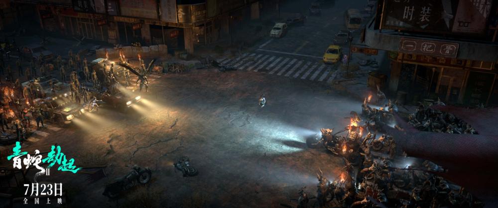 和《新神榜:哪吒重生》一樣,《白蛇2:青蛇劫起》也玩起了朋克風。在修羅城里,有像從好萊塢災難大片中平移過來的都市廢墟,牛頭馬面和羅剎們械斗的場面帶來一種審美對沖式的視覺奇觀。