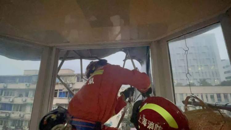 7月25日21時56分,北外灘一號接警稱楊浦區打虎山路6弄某號601室雨棚搖搖欲墜,北外灘一號到場后根據現場情況對該戶兩個窗戶外雨棚分別進行拆除和加固。