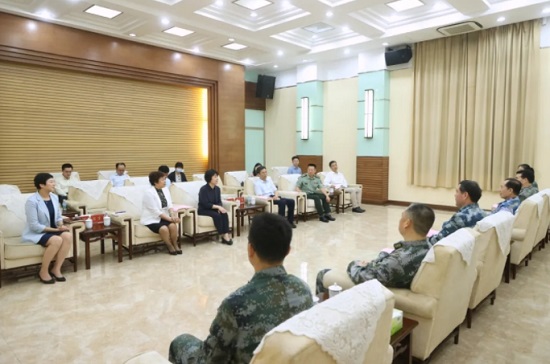 7月27日下午,在“八一”建軍節即將到來之際,區委書記郭芳前往上海警備區走訪慰問部隊官兵,向警備區全體官兵致以節日問候和祝福,并與上海警備區司令員劉杰、上海警備區政委薛宏偉等進行座談交流。