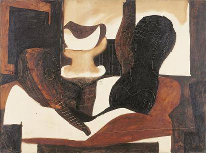 巴勃羅·畢加索《含古代頭像的靜物》。