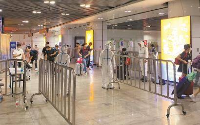 昨天,上;疖囌靖鱾出站口又搭起了大棚,穿著白色防護服的工作人員在大棚內逐個檢查出站旅客的健康碼。