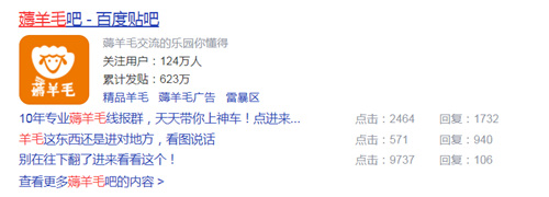 百度“薅羊毛吧”中,關注用戶達124萬人
