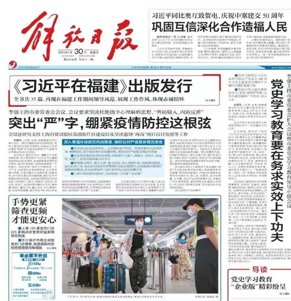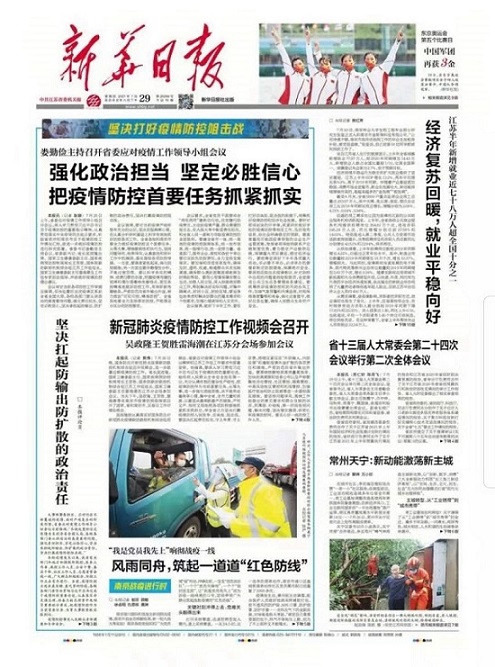 7月29日,《新華日報》一版,疫情防控已是“首要任務”