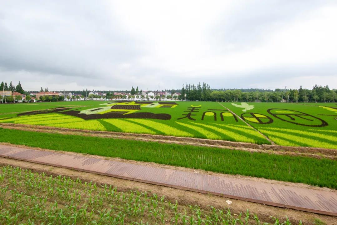 陽光下,合慶郊野公園入口處的一大片向日葵開得正盛,彌漫著盛夏特有的味道。而在不遠處的“美麗田園”,則是一片綠意蔥蔥——阡陌交錯的稻田里,各色水稻“繡”出了一個巨大的組合圖案,紫色、黃色水稻勾勒出“美麗田園”四個大字,黃色、白色、紅色水稻勾勒出農民房屋及田間道路等圖形。