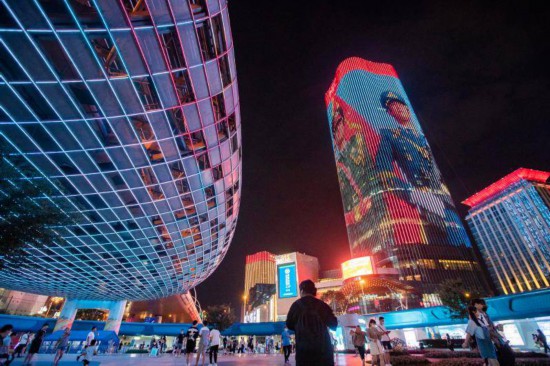 據了解,今天晚上,五角場還能看到“八一”主題燈光秀,亮燈時間為8月1日和2日兩天,每晚19-22點。