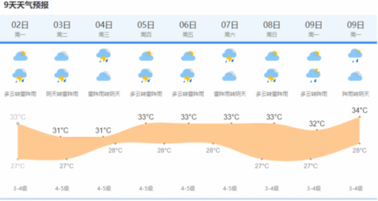 上海今有陣雨或雷雨最高33度 今起9天都有雨