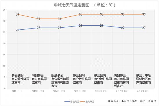 “煙花”之后,陽光緊隨而來,但是陣雨也不少。根據上海中心氣象臺預報,上海本周每天都有陣雨、雷雨、分散性陣雨、局地陣雨或雷雨……時晴時雨的天氣將成為常態。好消息是,氣溫比較平穩,最高溫保持在31到33℃,很難出現35℃以上高溫天氣。
