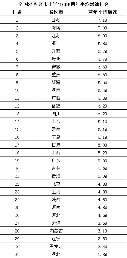 此外,海南、江蘇兩年平均增速分別為7%、6.9%,排名全國第二和第三。
