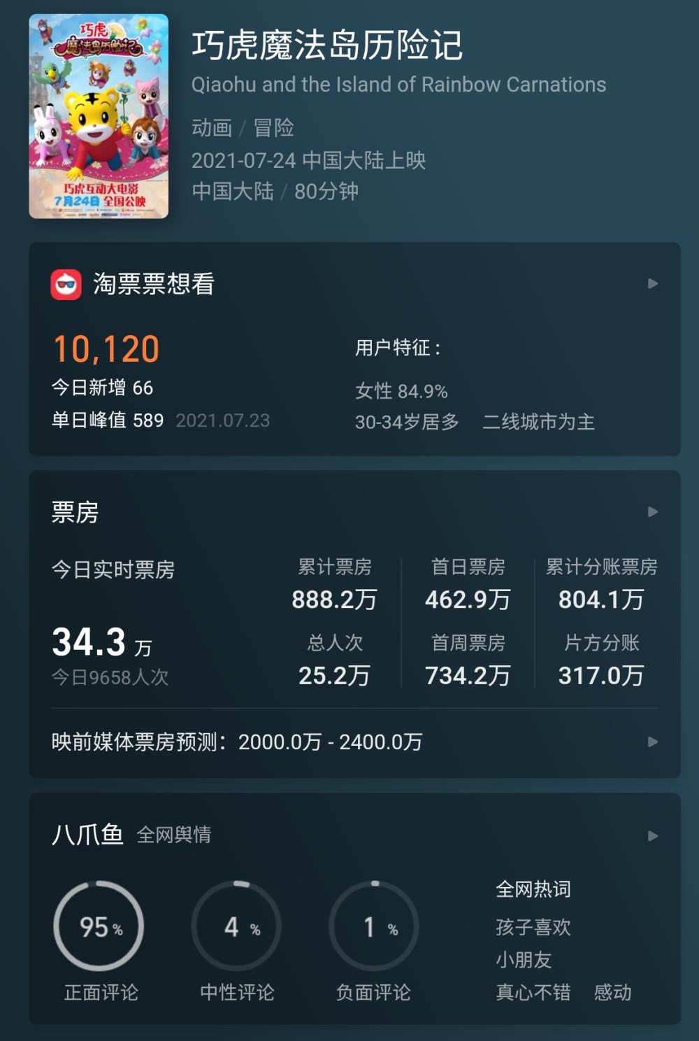 今年春節檔時,曾有網友發出疑問,“無法理解《熊出沒》的票房為啥一直比《新神榜:哪吒重生》高”,有人一語道破真相:“《熊出沒》是春節檔幼兒唯一可以看的”。根據燈塔專業版監測,《新神榜:哪吒重生》《姜子牙》等成人向動畫電影,負面評價都包括“不適合孩子看”“小孩看不懂”等,而《巧虎魔法島歷險記》的評論中,排在第一位的是“孩子喜歡”。