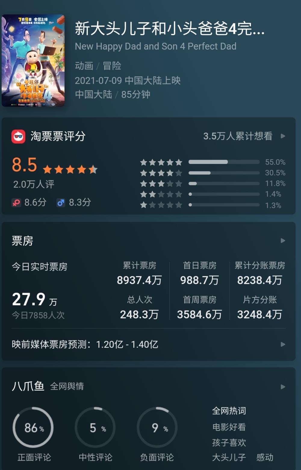 兒童才是暑期動畫觀影主力軍?曾有主打兒童IP動畫的制片人在描述市場信心時表示,除了兒童粉絲基本盤外,由于其需要家長陪同的因素,使得觀影人次可以翻倍!耙煌隙薄耙煌先钡姆绞,也是許多幼兒向、合家歡類動畫電影的票房法寶。張榮棣認為,雖然親子類動畫電影可以帶動一次性家庭多人購票,但影院觀眾的主力人群仍是成年人,“能否獲得成年人的喜愛,才是影片取得高票房的最重要動因!