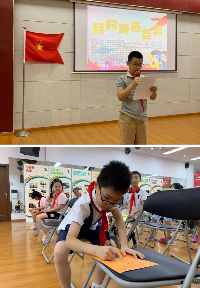 日前,鉑金華府彩虹理事會(第二屆)小理事選舉大會舉行。十位通過自主報名參與選舉的少先隊員先后上臺發表競選宣言。社區小先生們熱情洋溢地向在座的各位同伴、老師和家長進行自我介紹,在展示自己優勢與特長的同時,表達了為社區建設貢獻力量的美好心愿。