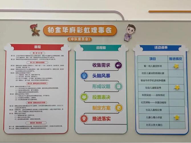 最終,通過各位少先隊員自主投票,共選舉出九位“鉑金華府彩虹理事會”新一屆成員。其中,年紀最小的為小學三年級,最大的初中二年級。馬上要升7年級的孟和是寶山社區小達人。當選小理事的她準備利用所長為社區服務:“我策劃活動、組織活動、主持活動這些方面比較有經驗,所以我會盡量為小區多出謀劃策,多多貢獻自己的力量!