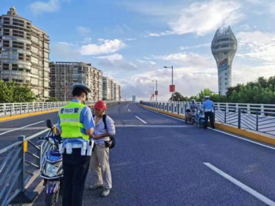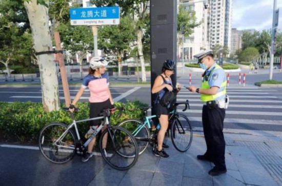 8月5日清晨5時30分許,警方在龍騰大道沿線設卡!翱焱O,你看看你們在哪里騎車?”5時45分許,幾名騎車人先后被民警攔下!坝惺裁床粚?”“自行車是非機動車,能在機動車道上騎行嗎?你們騎得那么快,萬一有早起鍛煉的老年人過馬路,多危險!”“我們錯了,我們認罰……”此外,還有不少電瓶車騎車人為貪圖方便駛上龍騰大道龍華港橋上層橋面,被民警攔下。在當天上午的整治中,民警共查處相關非機動車交通違法20余起。