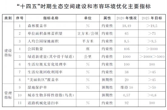 屆時,全市森林覆蓋率達到19.5%以上,人均公園綠地面積達到9.5平方米以上,公園數量增至1000座以上,新增綠道1000公里以上,濕地保護率維持50%以上。