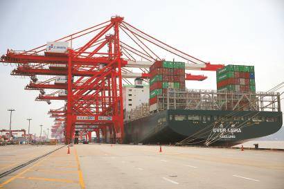 據介紹,“水水中轉”是外貿貨物中轉最為經濟、省時的運輸方式,但“水水中轉”需要海關監管政策與碼頭之間的高效協同。此前,外地外貿企業為了快速通關,往往選擇以成本較高的陸路運輸方式,將出口貨物運至上海,直接從上海報關出口。僅在蘇南地區,每天就有約4萬輛集卡往返于當地與上海港之間!奥搫咏有丁,是上海及周邊港口與海關聯手推出的政策組合拳——外地港口相關進口貨物可在洋山港辦理進口放行手續,經專用駁船轉運至外地港口后直接提離;出口貨物在外地港口辦理報關手續后,經專用駁船從當地港口運抵洋山港后,也可直接搭載遠洋貨輪離境。這一模式一舉解決了貨物轉關申報等問題,組合了最經濟的運輸方式和最便利的通關政策,從而吸引外貿企業“棄陸轉水”,洋山港與周邊港口的“水水中轉”由此真正熱鬧起來。