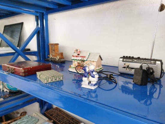 兒童繪本、童車、地球儀、滑板、火鍋爐……一間20多平方米的房間內,經過消毒、尚有利用價值的二手物品被分門別類,陳列在藍色的貨架上;體積大一些的二手家具和電子產品被放置在屋子的另一側,雖然有些擁擠,但工作人員仍努力用它們營造出一個客廳的感覺。