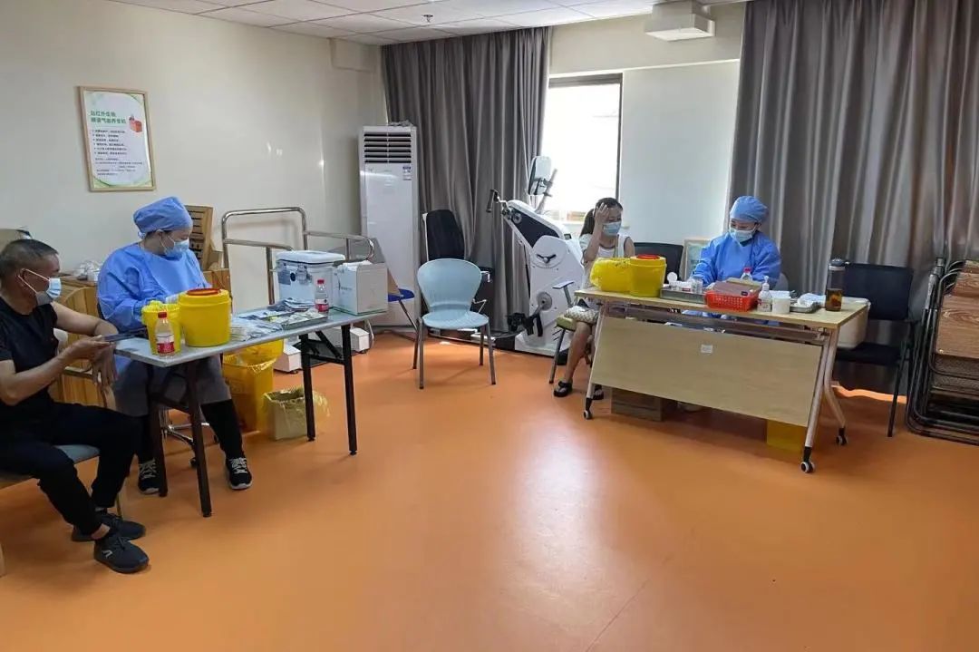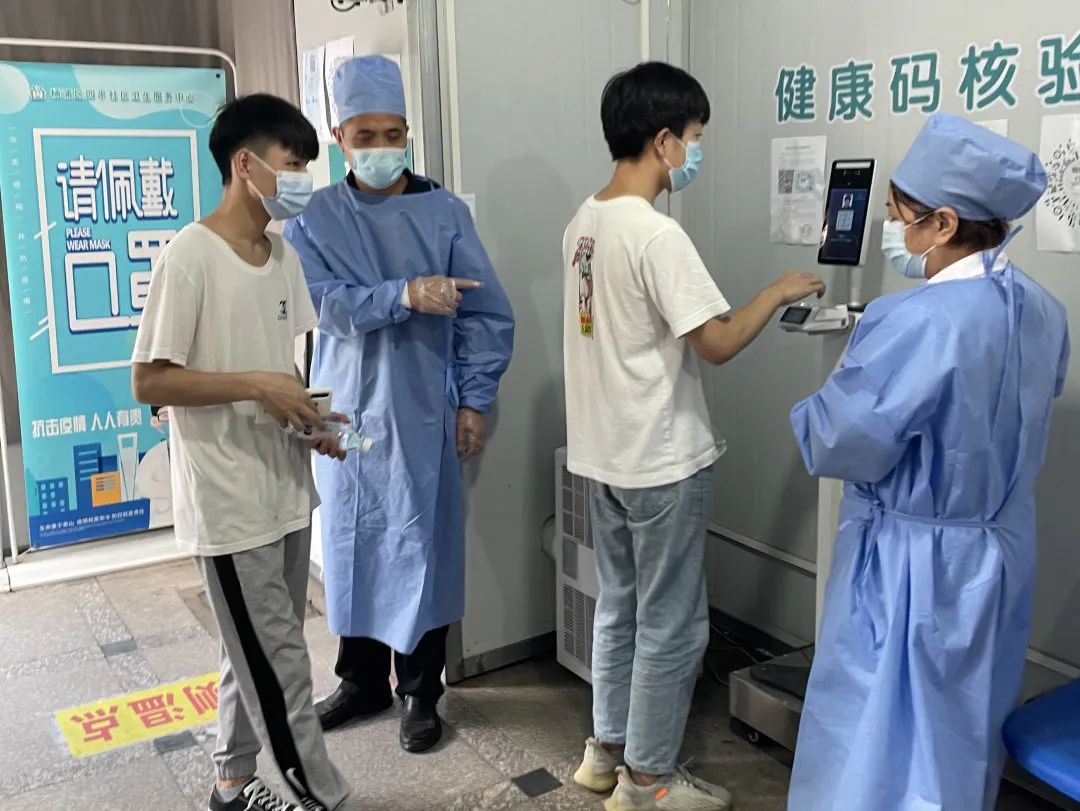疫情傳播還在繼續,確診病例數持續增加。各個接種點位上的工作人員仍一直堅守在崗位上,接受著高溫的“烤”驗。所有人須在入口處出示健康碼、行程碼,測溫后方可進入。工作人員一對一進行指導錄入健康信息,現場維護秩序,為居民提供政策解答、信息登記等貼心服務,確保疫苗接種工作有序進行。