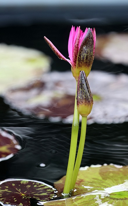 據了解,王蓮花朵通常晝合夜開,花蕾的第一個花瓣通常在下午綻開,花朵完全開放的時間一般是在傍晚,此時的花色純凈,并伴有淡淡清香;到第二天天亮時,王蓮的花朵開始閉合;傍晚時分,王蓮的花又重新綻放,而此時開放的王蓮為粉紅色至深紅色;到了第三天,花朵再次閉合并沉入水中。王蓮的葉子不僅碩大,而且具有超強的承重能力。