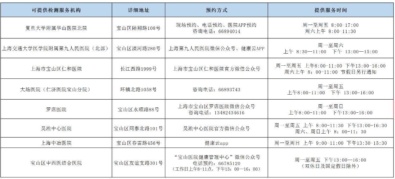 截至目前,全區共有包括復旦大學附屬華山醫院北院、上海交通大學醫學院附屬第九人民醫院(北部)、吳淞中心醫院、寶山區中西醫結合醫院等八家醫療機構提供核酸檢測服務。為適應當前形勢下疫情防控需要,全力做好新冠病毒核酸檢測工作,在滿足廣大群眾核酸檢測需求的同時,切實避免交叉感染,寶山區各醫療機構堅持人民至上、生命至上的原則,在核酸采樣點要求所有人員全程佩戴口罩,有序排隊。設置了“一米線”,不交談、不聚集,并配有志愿者及時監督提醒。為應對核酸檢測高峰,提高核酸檢測效率,區內各醫療機構均推出了線上和電話等方式的核酸檢測預約登記功能,使核酸檢測工作更加方便、快捷。