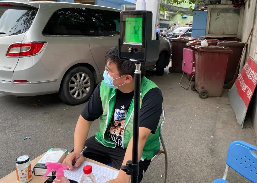 8月10日下午,記者來到殷行街道國和二村小區,在小區出入口看到,不管是小區居民還是外賣人員、外來訪客,均要在門口測體溫、出示“隨申碼”。如果遇到沒手機的老人,志愿者會仔細詢問老人居住信息,做好登記便于防疫管理。