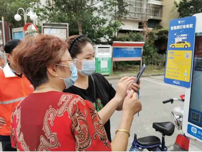 從7月中旬開始,這兩個小區就率先安裝了“一鍵叫車”智慧屏,并在居民中進行推廣使用。