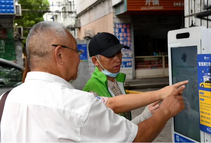 經過志愿者指導老年居民學習使用“一鍵叫車”系統,越來越多的老人掌握了操作方法。