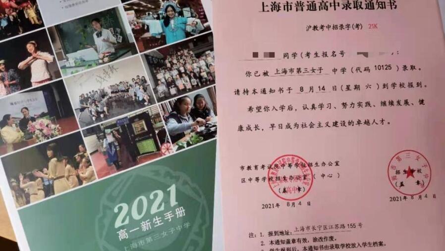 從浦東復旦附中分校的心形簽名祝福,到青浦高級中學的精美手繪畫作……各式各樣的錄取通知書層出不窮,所有的校方都希望考生能收到心儀學校的通知書,開啟高中新生活。